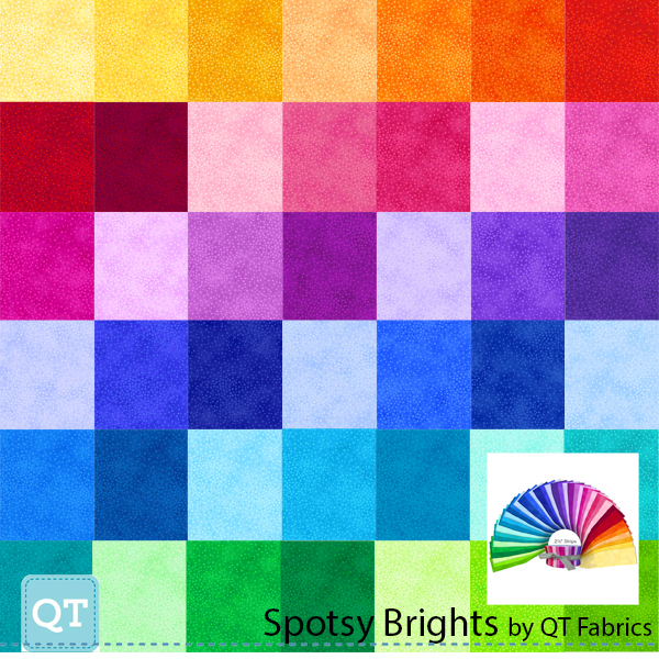 Add depth, dimension, and vivid color to any project with QT’s newest blender – Spotsy!. Meandering polka dots on a shadedl ground are available in 126 colors running the color gamut in brights, dusty, to neutral combinations. Select colors available in 108” wide width. ©QT Fabrics