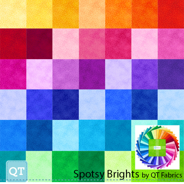 Add depth, dimension, and vivid color to any project with QT’s newest blender – Spotsy!. Meandering polka dots on a shadedl ground are available in 126 colors running the color gamut in brights, dusty, to neutral combinations. Select colors available in 108” wide width. ©QT Fabrics