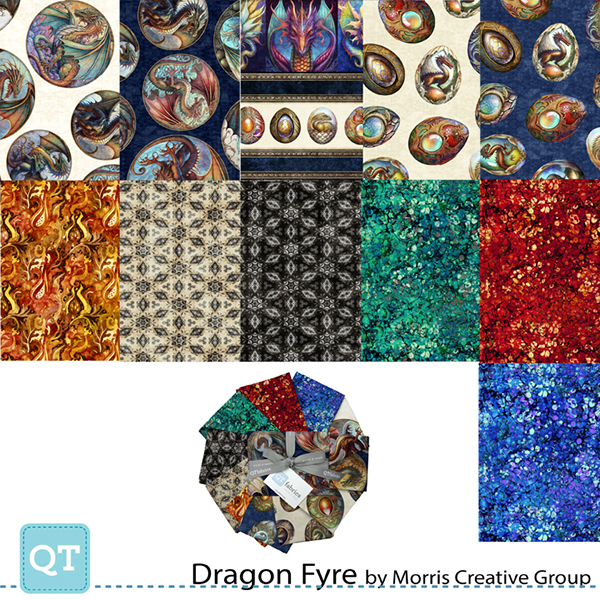 Fantasy comes alive on fabric. Fire breathing dragons are featured in a generous assortment of prints for endless sewing and quilting options. Create a themed quilt, bedroom décor, accessories and apparel with this vibrantly colored, impressive collection. ©Morris Creative Group.