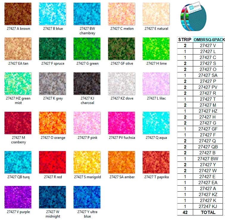 Why use a solid when you can create amazing projects with Ombre Squares? 28 striking colorways with great movement and variation of color! Say hello to your new favorite go-to fabric. Works well with Ombre Stitches, Color Blends and our Ombre Scroll blenders for more mix & match fun!