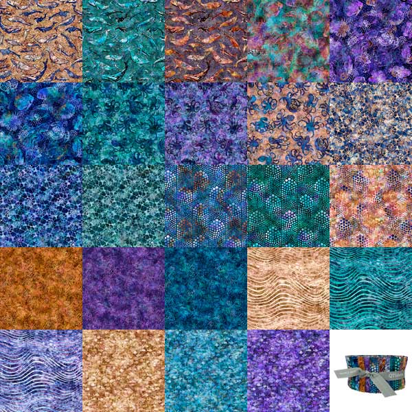 This collection by ©Dan Morris follows up the very popular Oceana collection. Ocean-themed designs with rich, nautical colors and layered textural elements. This QTique collection integrates the technology of digital printing with the aesthetic and traditional weave of batiks. Printed on cotton 130/70 woven fabric with the QT soft hand finish.