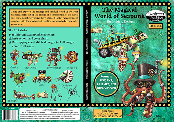 ©Desiree Designs takes us on an underwater adventure where imaginative sea life characters in a Steampunk world are waiting to greet you. This fantastical collection of imaginative octopi, seahorses, crabs, and other sea creatures are a sight to behold! Collection includes a 36” panel, picture blocks, a decorative stripe and fun coordinates. Create your aquatic masterpiece with this unique collection.