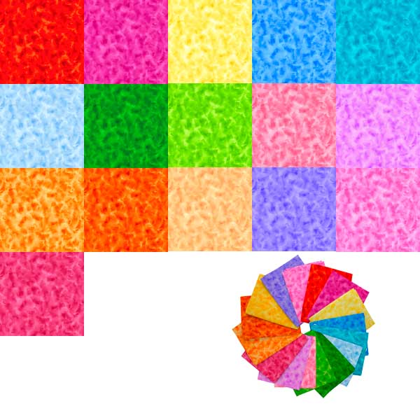 It takes two to tango…color and texture! Add some shimmy to your quilting and sewing projects with 84 combinations of pure color delight ranging from soft pastels to vivid brights, neutrals, to earth tones. ©QT Fabrics