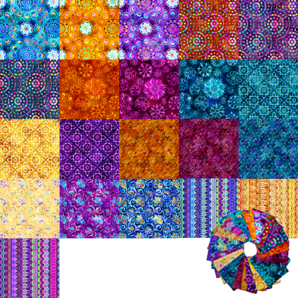 Various geometric, medallion and dotted prints in vibrant color evoke a hip vibe that will create on-trend quilts, mod accessories, and boho apparel. Project possibilities are endless! ©Dan Morris