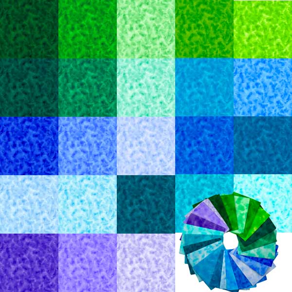 23 Piece Fat Quarter Bundle in BOLD COOL colors. Click Image for Detailed Contents
