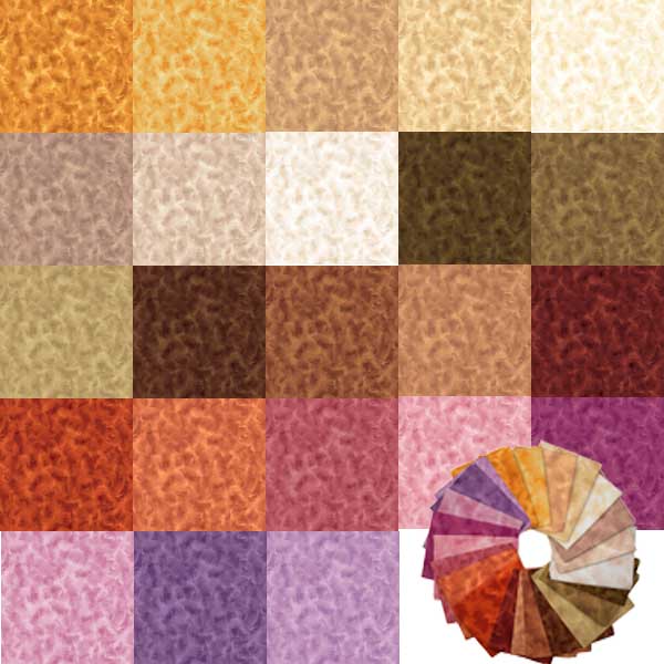 23 Piece Fat Quarter Bundle in SHY WARM colors. Click Image for Detailed Contents