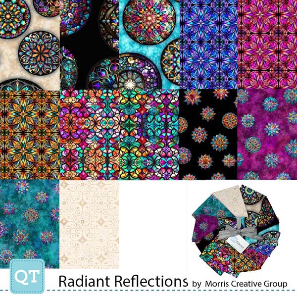 The beauty of stained glass shines bright on fabric in dramatic design and color. A 36” panel is center stage in this exquisite collection of vibrant motifs and coordinates. Mix and match the unique designs for one-of-a-kind projects! ©Morris Creative Group