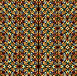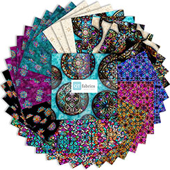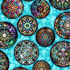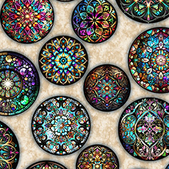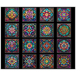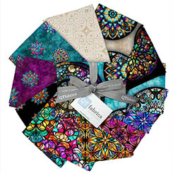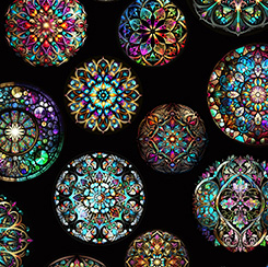 The beauty of stained glass shines bright on fabric in dramatic design and color. A 36” panel is center stage in this exquisite collection of vibrant motifs and coordinates. Mix and match the unique designs for one-of-a-kind projects! ©Morris Creative Group