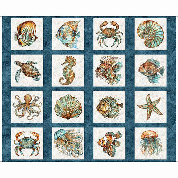 Create unique costal inspired projects! Sea creatures, shells, and textural prints bring a beachy vibe in ocean blues, corals, and sandy hues. Perfect for summer quilts, beach accessories, and novelty apparel! ©Morris Creative Group