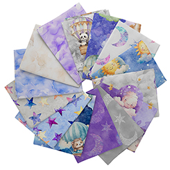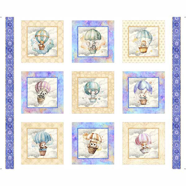 An adorable menagerie of animal friends in hot air balloons fly high in the sky and will take your little one to a dreamland. Soft, warm hues of blue, lavender, gray, and white anchor the whimsical design of this sweet collection. A perfect choice for a child’s nursery, baby accessories, and sweet apparel. ©Morris Creative Group