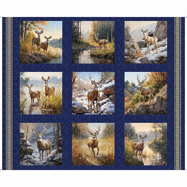 Create warm and cozy projects for a nature or animal enthusiast with this impressive, rustic collection. A 36” deer panel, picture patches, vignettes, and an animal toss are paired with interesting textural prints for endless project possibilities. The perfect choice for lodge/cabin décor, or a themed quilt for your favorite outdoorsperson. ©Morris Creative Group