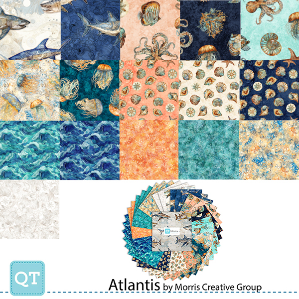 Create unique costal inspired projects! Sea creatures, shells, and textural prints bring a beachy vibe in ocean blues, corals, and sandy hues. Perfect for summer quilts, beach accessories, and novelty apparel! ©Morris Creative Group