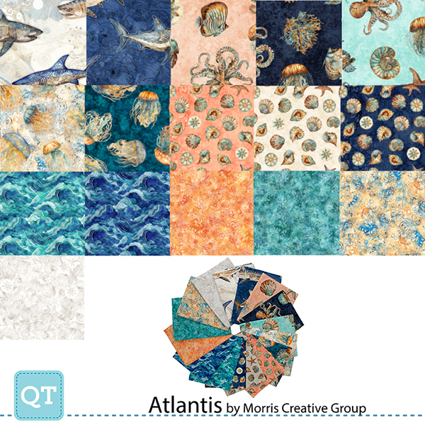 Create unique costal inspired projects! Sea creatures, shells, and textural prints bring a beachy vibe in ocean blues, corals, and sandy hues. Perfect for summer quilts, beach accessories, and novelty apparel! ©Morris Creative Group