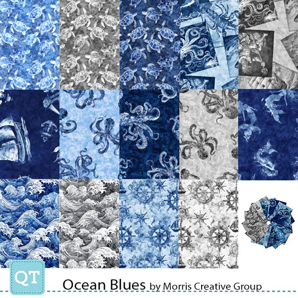 A sailor’s delight! This limited palette collection brings focus to stellar design and contrast within a collection. Offered in blue and gray, these fabrics can work together or on their own. So many nautical motifs to enjoy, there is something for everyone. With several projects available, think about creating a pop of color with Into the Woods fabrics. ©Morris Creative Group.