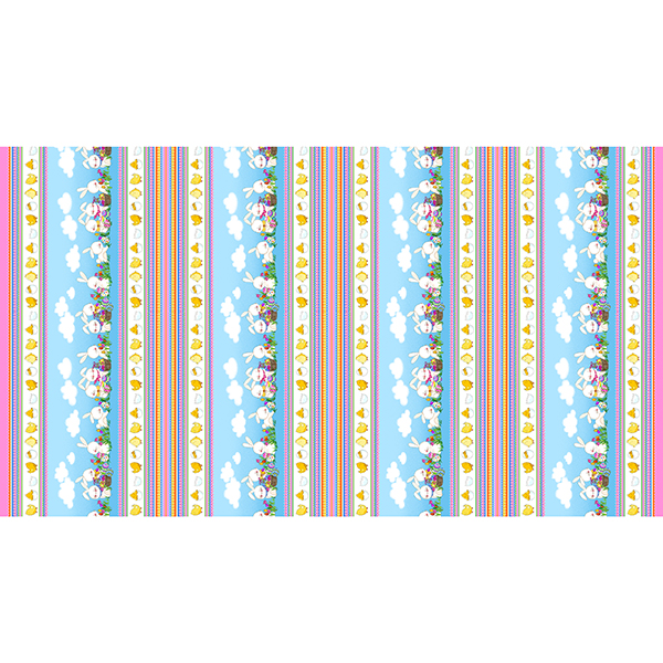 Darling bunnies frolicking about with their Easter baskets full of colorful eggs are so happy and sweet. Little chick friends and a coordinating decorative stripe give lots of options for this fun holiday collection. Punch up the color with our in-stock basic Spotsy! ©EunYoung Otsuki for QT Fabrics.