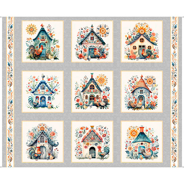 Roosters, hens, chicks, and sunflowers show off their homestead with pride. Gorgeous picture patches with an abundance of coordinates allow for lots of great décor and accessory projects. Mix and match the bold and soft colorways.