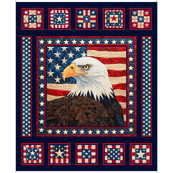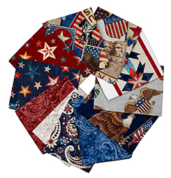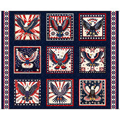 A Patriotic quilter’s dream! The glory of the “old red, white, and blue” shines through with this assembly of designerly fabrics. Starring 4 different panels options, there are so many opportunities to show your pride with your projects! The decorative stripe is unique and versatile. ©Dan Morris