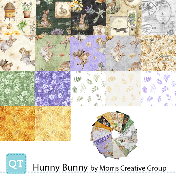 A sophisticated Springtime collection with assorted collage, floral, bunny and garden prints. Starring a picture patch panel with 25 unique blocks and touches of goldenrod and lilac to bring extra pop to your projects. ©Morris Creative Group.