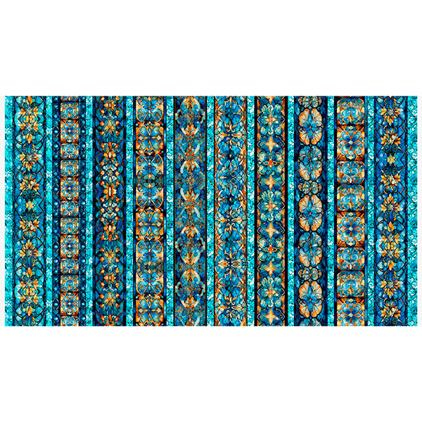 An eye catching 36” sun panel is captivating in bold hues of navy and teal accompanied by celestial picture patches, mandalas, and intricate geometric coordinates. Create projects that will evoke a sense of peace and tranquility with this trendy bohemian inspired ensemble. ©Morris Creative Group