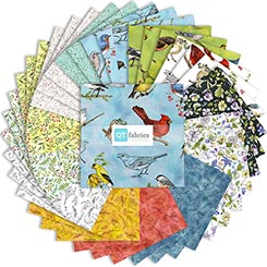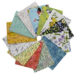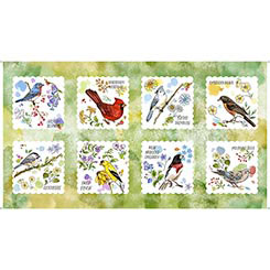 Watercolored and sketched renderings of our favorite birds are reminiscent of a page right from an artist’s sketchbook. 36” panel, picture patches, and a generous assortment of coordinates in a calming color palette truly captures the essence of nature. Create quilts and home/porch décor for your favorite bird watcher. ©Jane Maday