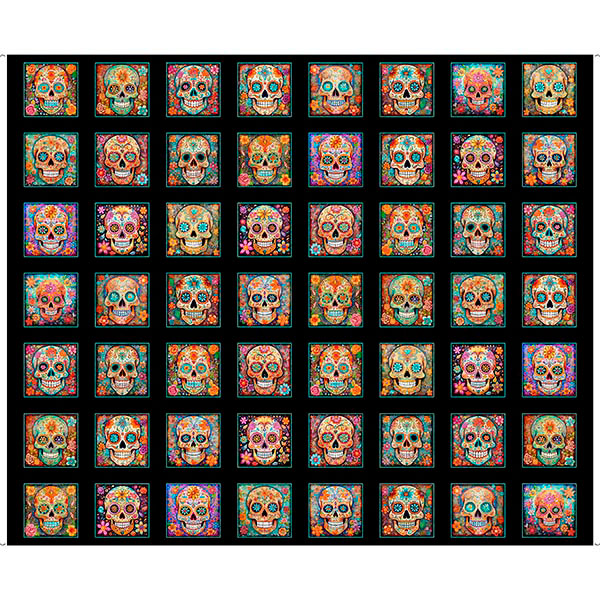 Beautifully decorated and brightly colored sugar skulls are paired with intricate florals and geometrics . Celebrate the lively traditions of Dia de los Muertos (Day of the Dead) or any day with quilts, home décor, apparel, and accessories! ©Morris Creative Group