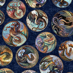 Fantasy comes alive on fabric. Fire breathing dragons are featured in a generous assortment of prints for endless sewing and quilting options. Create a themed quilt, bedroom décor, accessories and apparel with this vibrantly colored, impressive collection. ©Morris Creative Group.
