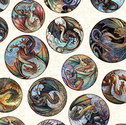 Fantasy comes alive on fabric. Fire breathing dragons are featured in a generous assortment of prints for endless sewing and quilting options. Create a themed quilt, bedroom décor, accessories and apparel with this vibrantly colored, impressive collection. ©Morris Creative Group.