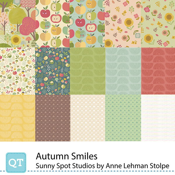 Artist Anne Lehman Stolpe of ©Sunny Spot Studio shares her love of drawing, color and design in this charming collection of sweet autumn motifs. This modern vintage ensemble is perfect for unique contemporary quilts, sweet apparel, and trendy accessories.