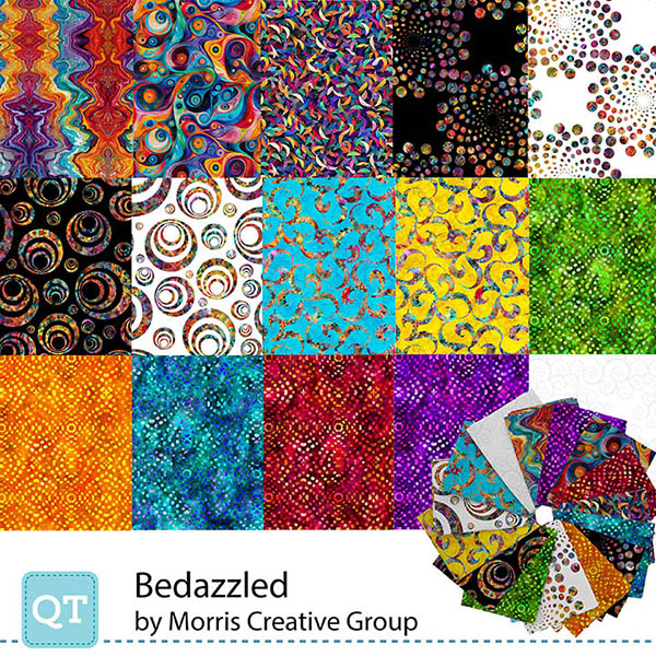 Swirling geometric patterns bursting with color and energy are a perfect choice for a modern quilt or home décor accents. A 36” panel, coordinating picture patches, and a generous assortment of coordinates will create projects with a trendy, modern vibe. ©Morris Creative Group