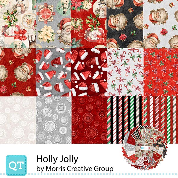 Vintage Christmas ephemera tells a story of holiday celebrations from days gone by. A 36” Santa panel, picture patches, allovers, snowflakes, and a candy cane stripe are rendered in antique Victorian fashion that will bring you back in time. Spread the joy with quilts, home décor, and accessories for yourself or a loved one. ©Morris Creative Group