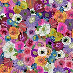 Let your creativity bloom! A 36” panel features a colorful and stylish bouquet paired with floral coordinates and blenders to create unique and on trend projects. Perfect for home décor accents, chic quilts, and accessories. ©Suzanne Allard