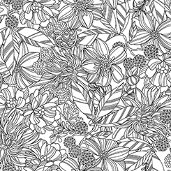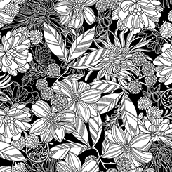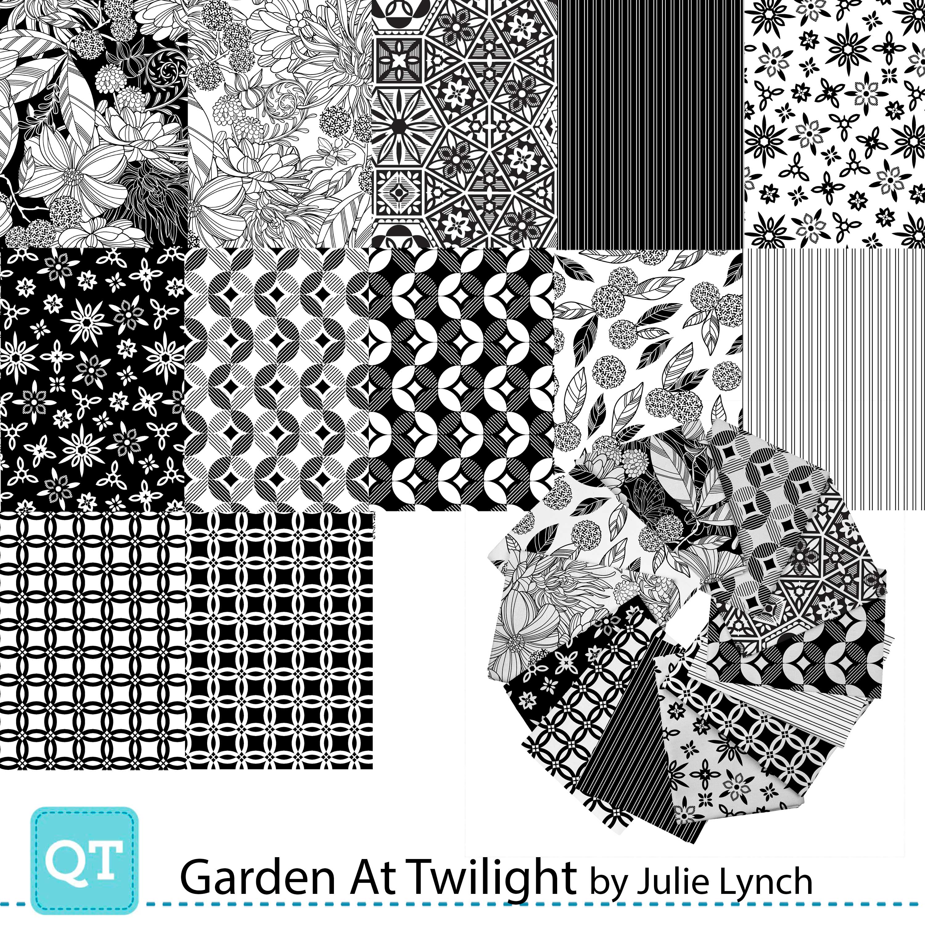 Linear florals and geometrics are brought to another level with the drama of black and white. A perfect choice for sophisticated, high style quilts, home décor accents, or trendy apparel and accessories. Infuse a pop of color here and there for projects with a designers touch! ©Julie Lynch