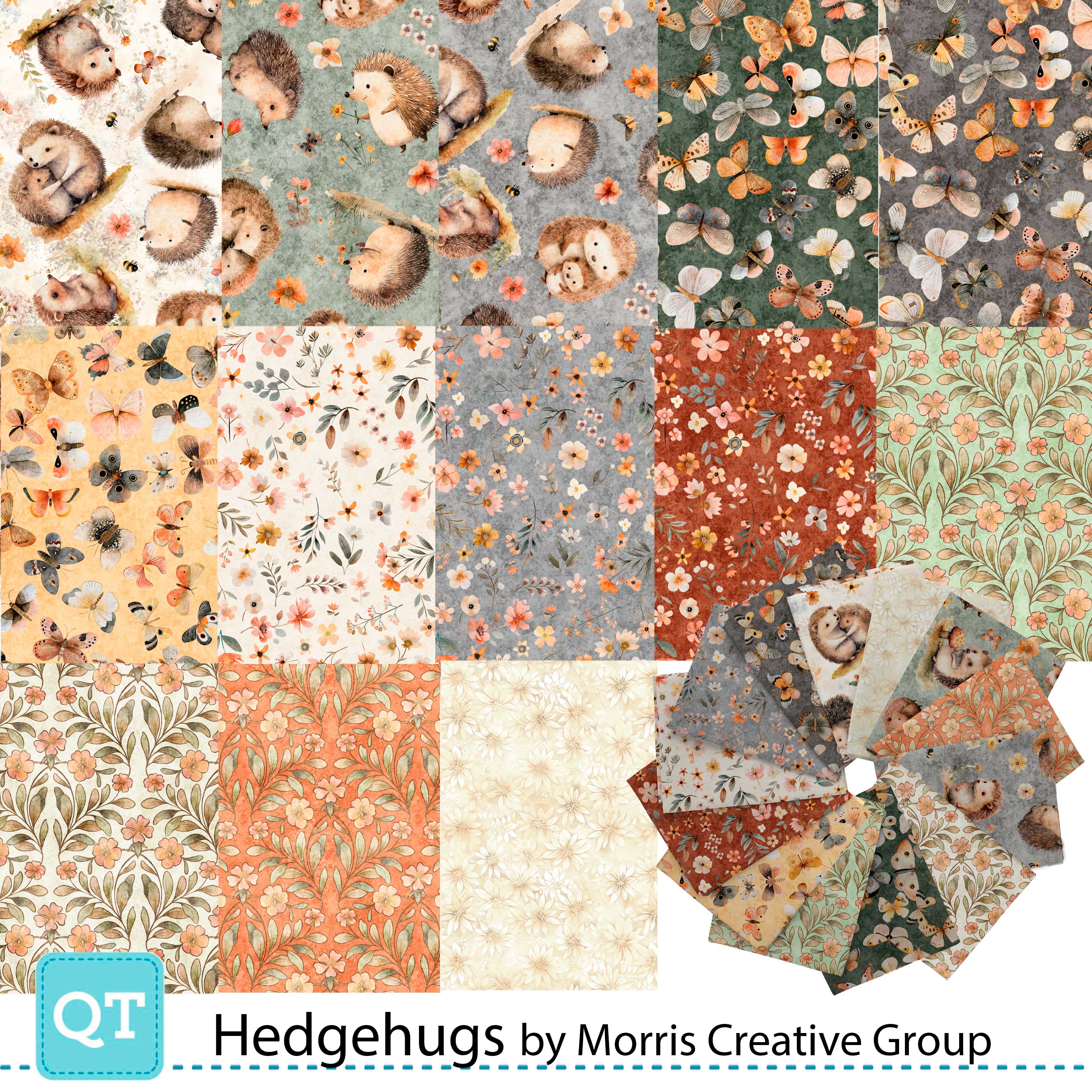 Cuddly hedgehogs combine with the beauty of butterflies and florals. Create warm and cozy quilts, adorable apparel and accessories for a little one that celebrates these loveable critters. ©Morris Creative Group