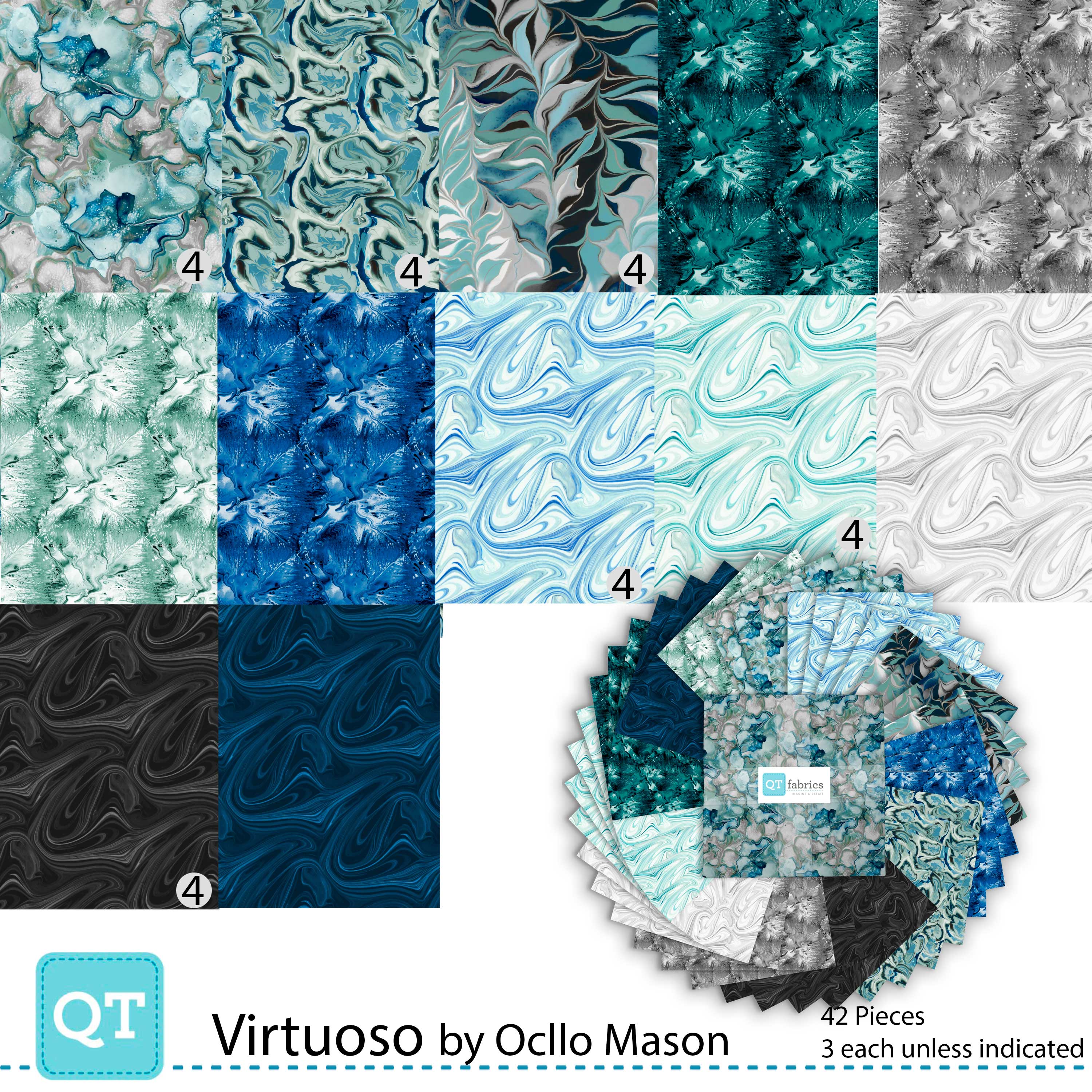 The stylish acrylic paintings from artist Ocllo Mason are brought to life on fabric! Abstract renderings in varying hues of teal, blue, aqua, and black mimic fluid ferns and florals, marble, and unique textures. Perfect for trendy quilts, apparel, and chic home décor!