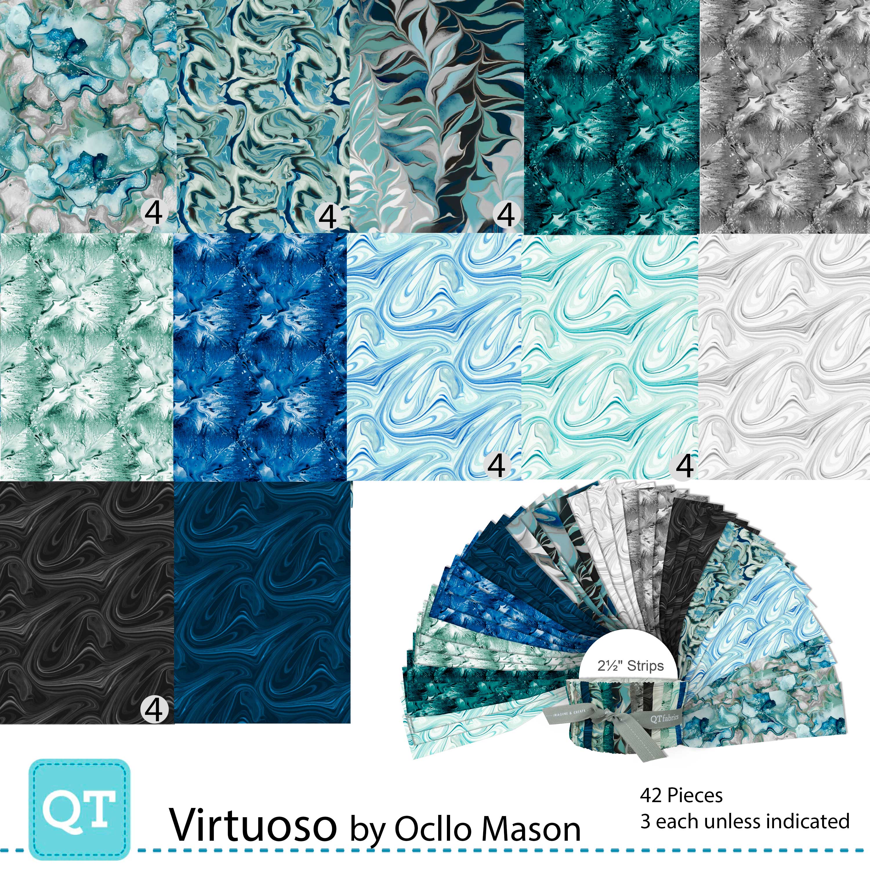 The stylish acrylic paintings from artist Ocllo Mason are brought to life on fabric! Abstract renderings in varying hues of teal, blue, aqua, and black mimic fluid ferns and florals, marble, and unique textures. Perfect for trendy quilts, apparel, and chic home décor!