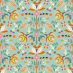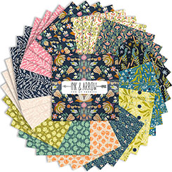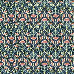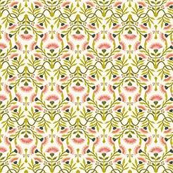 Fanciful foliage and romantic vines offer a unique juxtaposition of design and unexpected color. Create quilts, home decor accents, and unique accessories with this on-trend, chic ensemble. ©Kate Lower for Ink & Arrow This is an organic cotton collection.