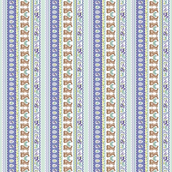 Evoke a sense of Springtime magic with this lovely array of bunnies, eggs, florals, geos and stripes in a fresh palette of rich purples, soft lavender, and aqua. Bring the spirit of Easter and a new season to quilts, home décor accents, tabletop, and apparel. ©Julie Lynch