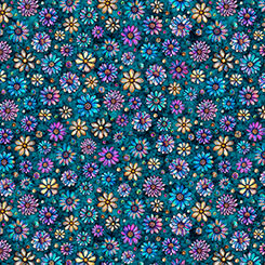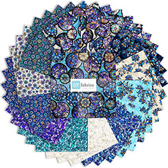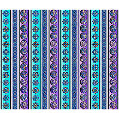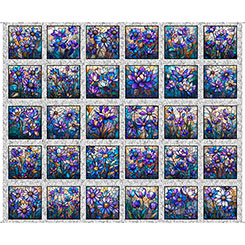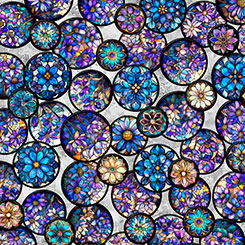 A stunning 36" fabric panel is reminiscent of the intricate beauty of stained glass, featuring a rich color palette of deep blues, vibrant violets, turquoise, and regal purples. Bring a sense of elegance and artistry to any project with a wide range of design layouts that offer endless creative possibilities. ©Morris Creative Group