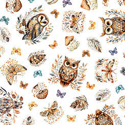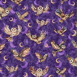 Create a sense of wonder and mystery! Owls and florals combine in a stunning palette of deep purple, lavender, and dark navy that seems to capture the magic of the night. Choose from picture patches and versatile owl and floral coordinates - surely a wise choice! ©Morris Creative Group
