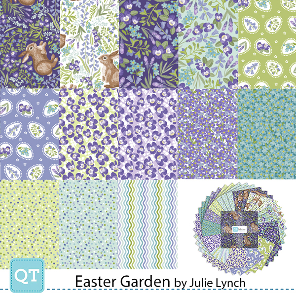 Evoke a sense of Springtime magic with this lovely array of bunnies, eggs, florals, geos and stripes in a fresh palette of rich purples, soft lavender, and aqua. Bring the spirit of Easter and a new season to quilts, home décor accents, tabletop, and apparel. ©Julie Lynch