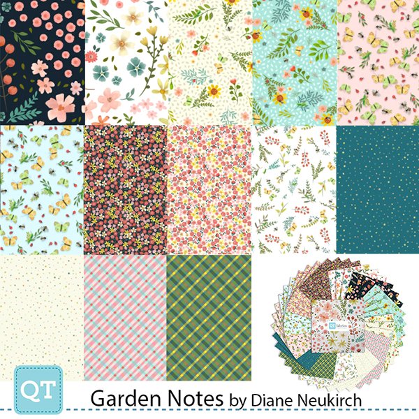 Delicate florals and geos evoke a classic romantic flair and timeless elegance. Beautifully detailed designs in a soothing color palette offer endless possibilities for creating quilts, stylish apparel, and charming accessories. ©Diane Neukirch for QT Fabrics