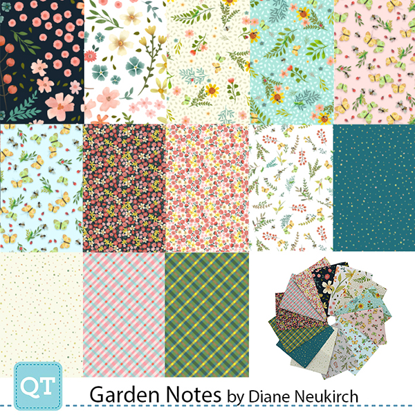 Delicate florals and geos evoke a classic romantic flair and timeless elegance. Beautifully detailed designs in a soothing color palette offer endless possibilities for creating quilts, stylish apparel, and charming accessories. ©Diane Neukirch for QT Fabrics
