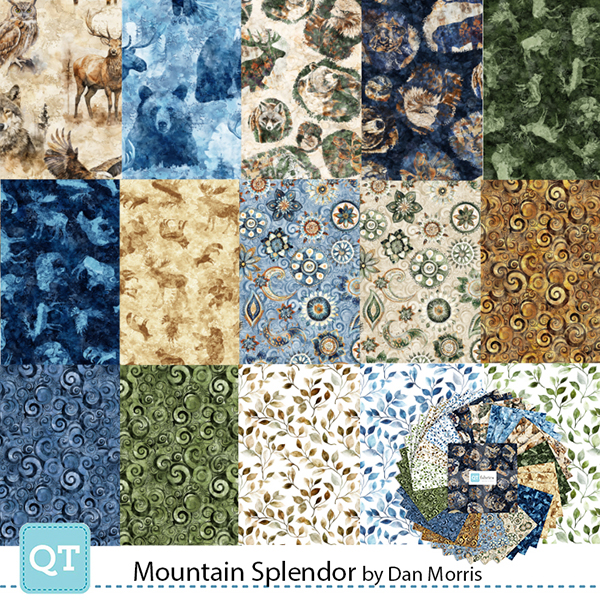 Bring the rugged beauty of the wilderness to your next project! Majestic mountain animals are rendered in rustic, textural design in picture patches, a border stripe, and coordinating allovers. Create projects for a hunter, outdoorsperson, or nature enthusiast. ©Dan Morris