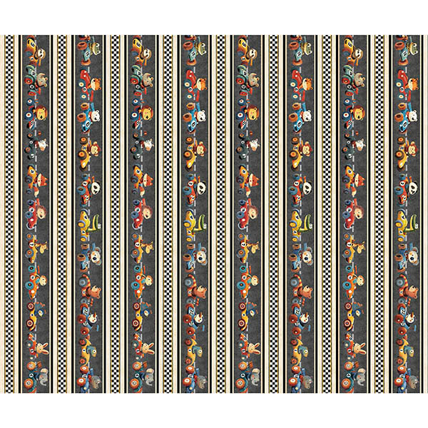 Adorable animals take the driver’s seat in miniature racecars, and it is full throttle on fun! A racetrack panel, 8” square picture patches, a border stripe, fun coordinates, and easy-sew MINKY panel of pillows are right on track for unique projects. Create themed nursery/kids’ room, playful apparel, and accessories for a young speedster! ©Morris Creative Group