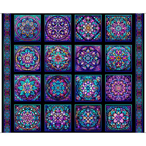 Intricate, fractal designs rendered in a rich palette of deep purples, magenta, blues and black are bold and bright in this dramatic ensemble. Create mesmerizing projects reminiscent of stained-glass windows sure to impress! ©Morris Creative Group