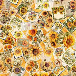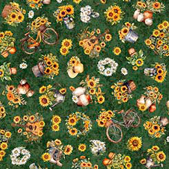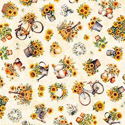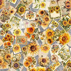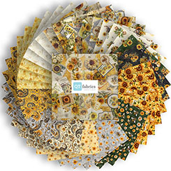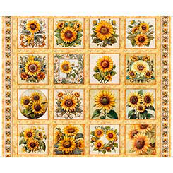 Golden, radiant, and full of life, the sunflower is a symbol of joy, warmth, and the turning of seasons. A 36” sunflower panel, 8” square picture patches and a generous array of richly colored coordinates will create projects that will capture the spirit of a countryside summer day. ©Morris Creative Group