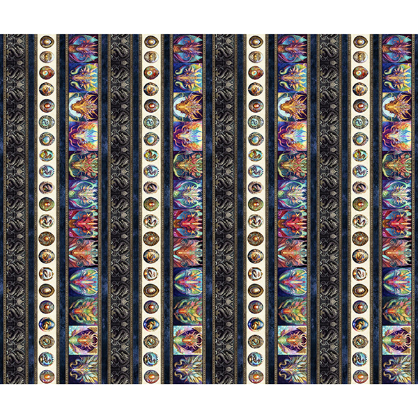 Fantasy comes alive on fabric. Fire breathing dragons are featured in a generous assortment of prints for endless sewing and quilting options. Create a themed quilt, bedroom décor, accessories and apparel with this vibrantly colored, impressive collection. ©Morris Creative Group.