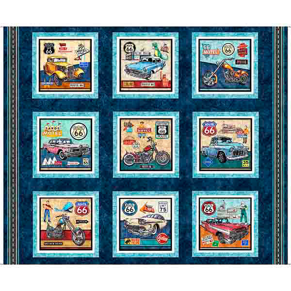 Plan your route to fun and colorful projects and celebrate 100 years of the iconic east-west highway. From cowboys to Indians, dinosaurs to astronauts, neon signs to drive in diners, this ensemble will take you on a creative trip. A “Mother Road” panel and antique car and motorcycle picture patches will lead the way! ©Morris Creative Group